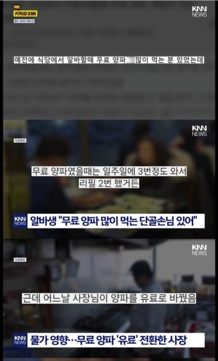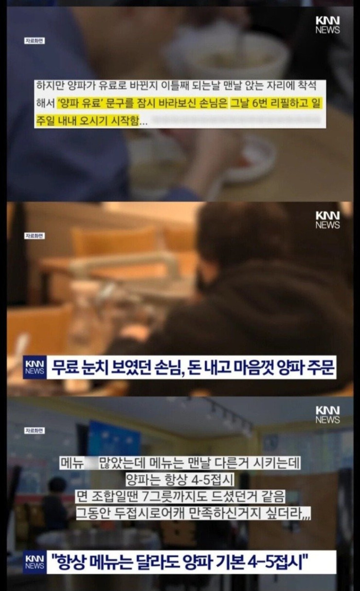 무료양파 리필 잔뜩퍼가는 손님 양파 유료 전환후 결말