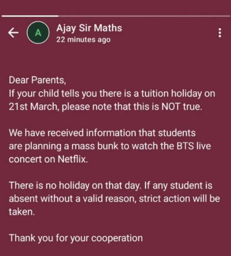 저희는 학생들이 넷플릭스에서 생중계되는 BTS 콘서트를 보기