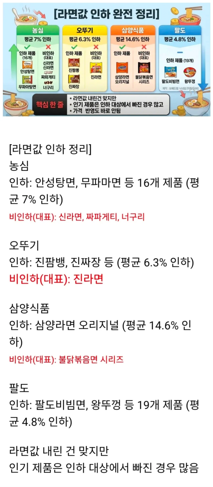 라면값 인하 정리