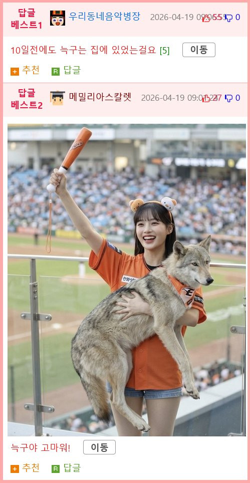 늑구빵도 생겼다는데 ... https://v.daum.net/v/20260419172302466