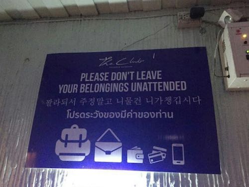 태국 클럽의 한국어 경고문